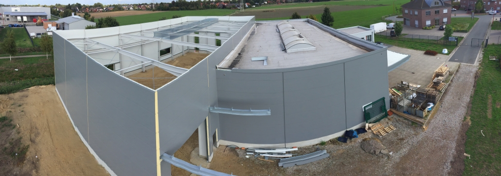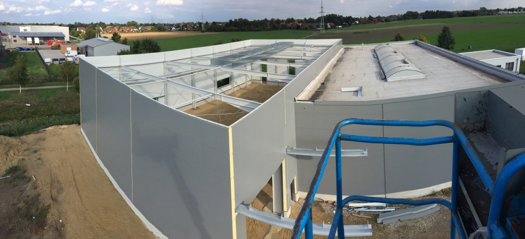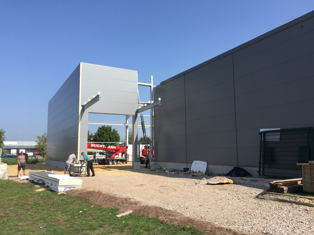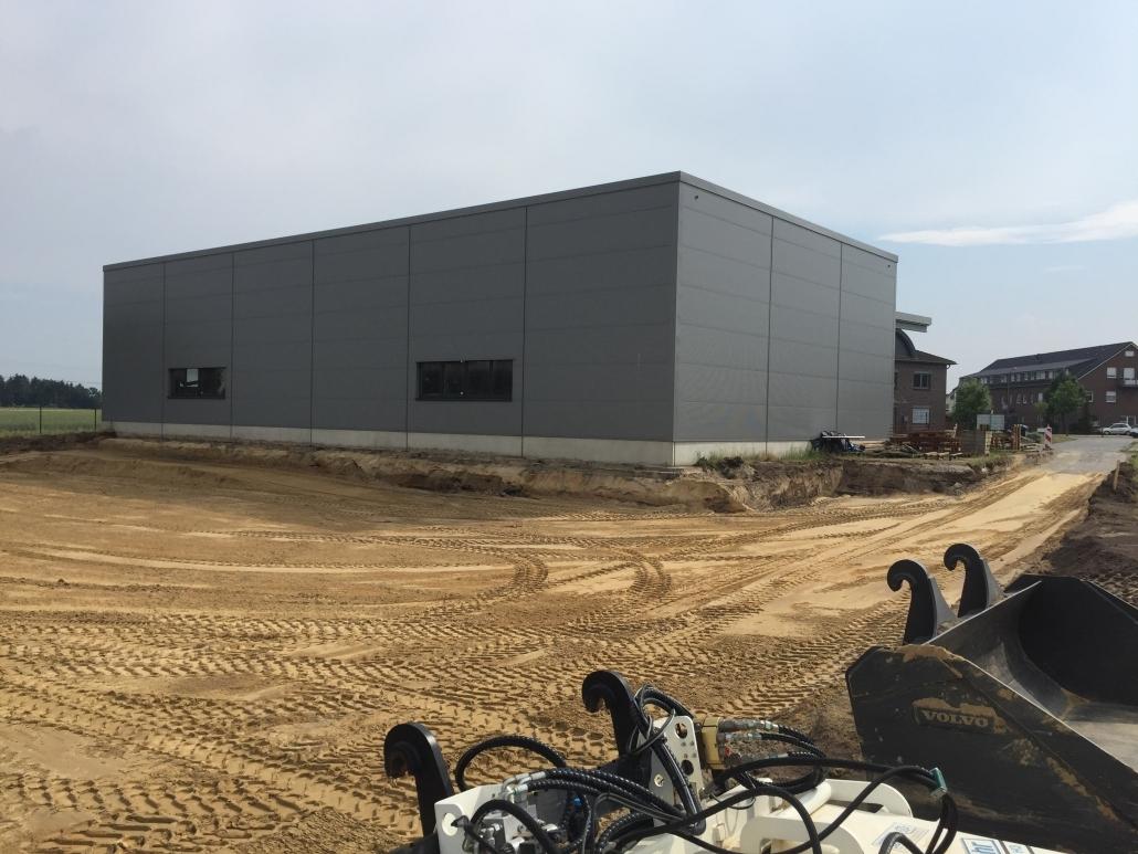 Ende 2014 ist die Halle mit einem kleinen Bürokomplex fertiggestellt.