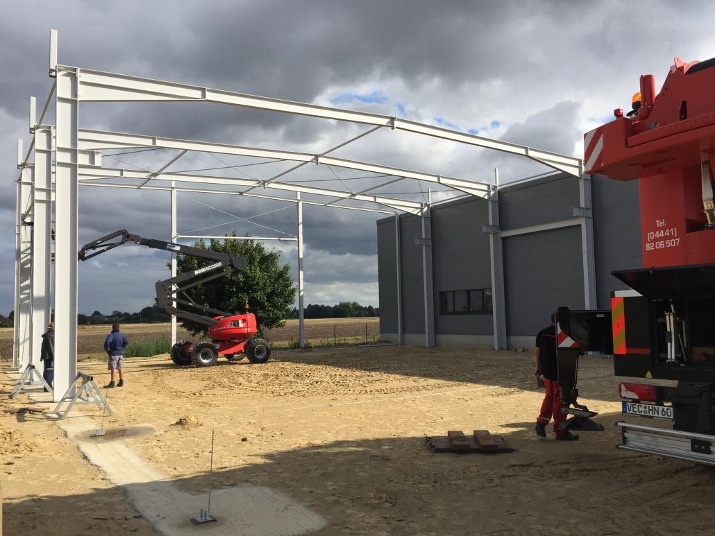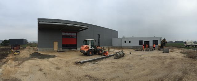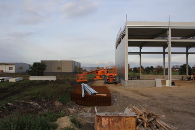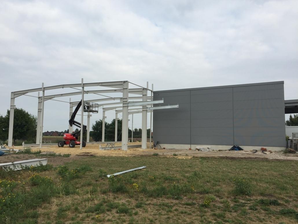 Es geht wieder los. Eine zweite Halle wird gebaut. Diesmal wird die Halle fast doppelt so groß wie die erste Halle.